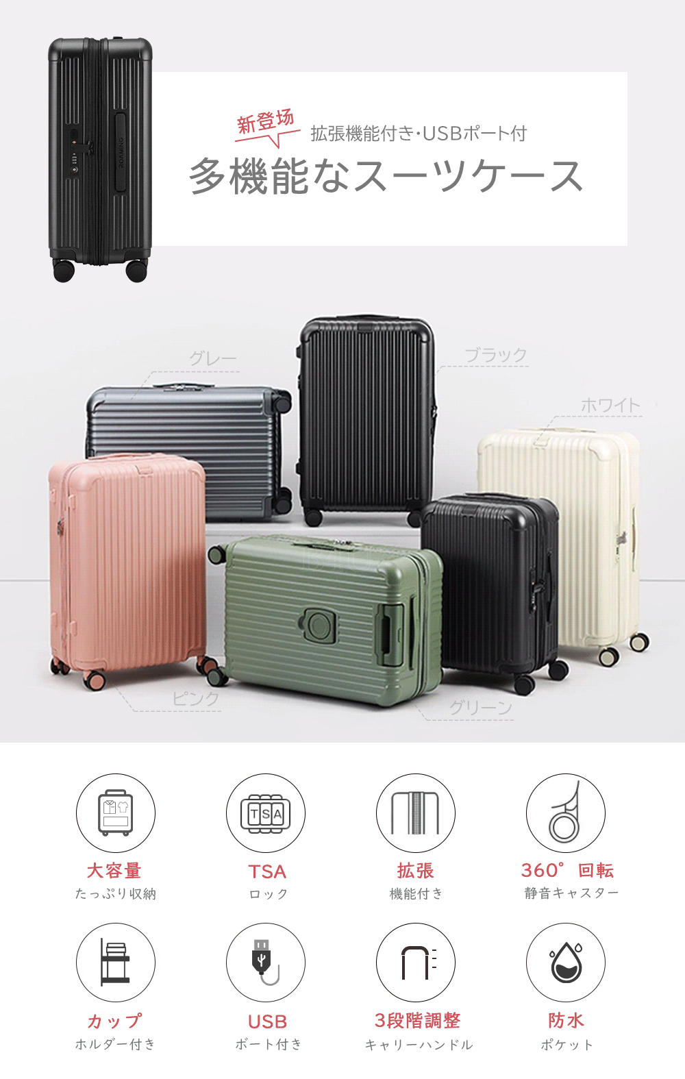 ホットワード(※こちらは参考ホットワードとなります。):B4U スーツケース 機内持ち込み Sサイズ Mサイズ Lサイズ 拡張機能 修学旅行 キャリーケース キャリーバッグ 20インチ 24インチ TSAロック ダブルキャスター 大容量 充電 耐衝撃 出張