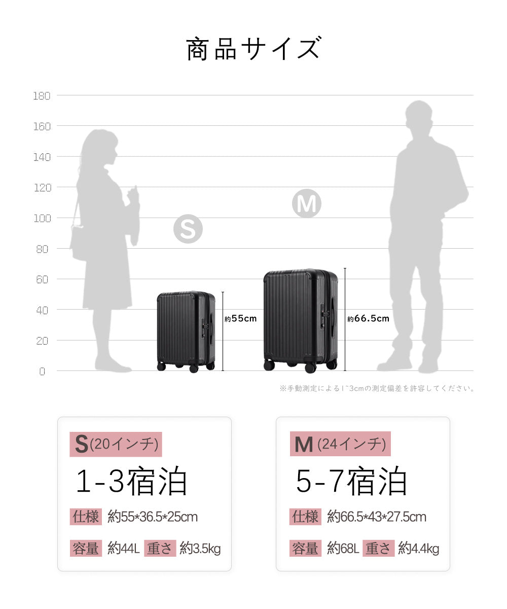 | ●商品仕様 | 20インチ:55cm ×36.5cm × 25cm 24インチ:66.5cm ×43cm ×27.5cm 生産国:china |